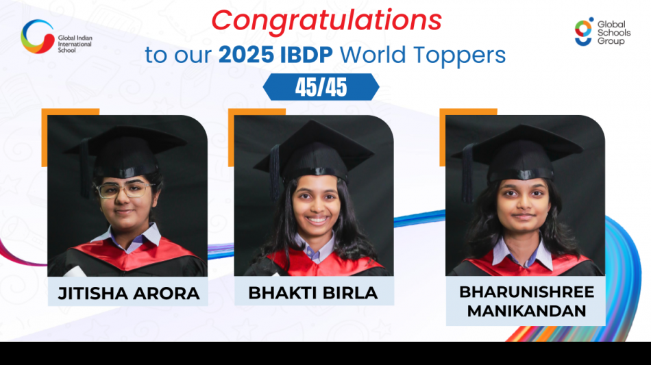 Three students - Jitisha Arora, Bhakti Birla, and Bharunishree Manikandan - have achieved the maximum score of 45 out of 45 in the International Baccalaureate Diploma Programme (IBDP) May exams, earning the title of World Toppers and placing them among the highest achievers globally.