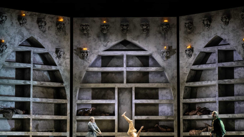 Libera solo quando trafiggerà se stessa e il suo desiderio, uccidendo l'amore, spirituale e carnale, che la ossessiona da sempre. E così, tra suore possedute dal demonio in un monastero dove un inquisitore cerca di esorcizzarle, Renata prenderà le sembianze di una Madonna mentre ai suoi piedi cadrà l'angelo Madiel. Sono vittime entrambi dei pregiudizi di una società che vede il male laddove c'è solo la voglia di amare di una donna libera e per questo condannata al rogo come fosse una strega. Con la regia di Emma Dante è andata in scena ieri sera al teatro Petruzzelli di Bari la prima de L'Aneglo di fuoco di Sergej Prokof'ev. Sul palco del politeama barese, in cinque atti, la maestosità e la potente eleganza delle note del compositore russo suonate dall'orchestra del Petruzzelli. A guidarla per due ore e mezza il maestro Jordi Bernàcer che ha diretto anche il coro del teatro, sempre all'altezza delle prove più difficili. Affascinanti i costumi macabri, ingrigiti e logorati dal tempo, firmati da Vanessa Sannino. Le scene di Carmine Maringola, il disegno luci di Christian Zucaro e le coreografie di Manuela Lo Sicco rendono difficile distogliere lo sguardo per leggere la traduzione in italiano nei sopratitoli. La più applaudita tra il cast è Renata, interpretata da Ángeles Blanca Gulín. Protagonista del cammino che confonde il bene con il male per tutta l'opera è l'angelo Madiel interpretato da un danzatore di breakdance che, spiega Emma Dante, "vola utilizzando gli arti inferiori: le sue gambe diventano ali" per "librarsi da terra in un dinamismo al contrario in cui il suolo diventerà il suo cielo". Storicamente siamo nella Germania nel XVI, tra catacombe, scheletri e figure ancestrali. Ma ne L'Angelo di fuoco, evidenzia la regista, "siamo in uno stato mentale, in una collocazione a tratti spirituale senza luogo né tempo". Un tempo che Renata trascorre a lottare con i propri sentimenti, vittima del desiderio di amare che la porta a scegliere sempre l'uomo sbagliato in cui spera di ritrovare il suo amato Madiel: prima con il conte Heinrich e poi con Ruprecht. Un tormento che trova il suo culmine quando è lei stessa a cheidere perdono all'angelo per aver cercato lui, il divino, in chi è soltanto un uomo. "Renata è destinata a un martirio mistico. Come in un esorcismo - afferma Dante - si libera del diavolo-angelo e si sacrifica, diventando un'icona, davanti a un Cristo scheletrico, dal corpo ossuto e il viso di donna".