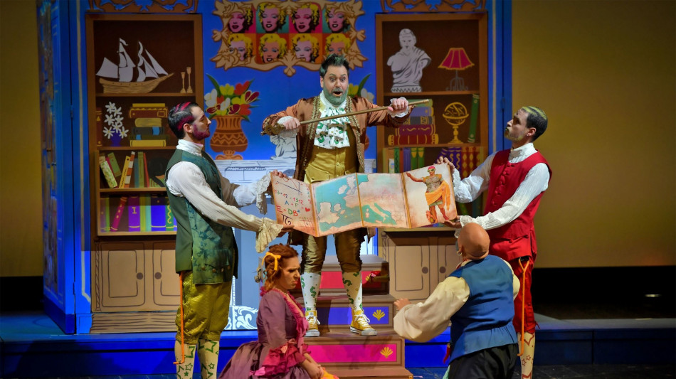 (di Federica Acqua) Divertente, colorato, applaudito. È stato così il 29 novembre il debutto al Teatro Pergolesi di Jesi dell'opera buffa di Gaspare Spontini I Quadri Parlanti, frutto nel 2016 dell'avventuroso ritrovamento della sua partitura ritenuta scomparsa per oltre due secoli nella biblioteca del Castello d'Ursel a Hingene in Belgio. Concepito a Napoli e andato in scena forse per l'unica volta nel 1800 al Teatro Santa Cecilia di Palermo per volere del re di Napoli Ferdinando III, il 'dramma giocoso per musica' poté godere grazie al suo prestigioso committente di un teatro e di un organico orchestrale più ampio (una quarantina di esecutori) di quello normalmente usato in opere di questo tipo. E così, salvo piccole sforbiciate ai recitativi secchi, è stato riproposto nell'edizione critica curata da Federico Agostinelli per la Fondazione Pergolesi Spontini in collaborazione col Centro Studi per la Musica Fiamminga di Anversa. È un esempio sia nella partitura che nella trama dell'opera buffa in voga alla fine del '700 a Napoli e comprende sette interpreti: tre soprano, due tenori e due bassi buffi, di cui uno si esprime in napoletano per intercettare i gusti popolari, e niente coro, per un totale di 18 brani, 11 nel primo atto e sette nel secondo. Creata per divertire un pubblico trasversale, delineando personaggi di genere che vedono la servitù opposta alla borghesia o alla nobiltà, si situa musicalmente e storicamente tra Mozart e Rossini, ma non presenta picchi belcantistici, bensì un andamento tradizionale regolare e armonioso che nell'allestimento jesino coinvolge tutti gli interpreti poco più che trentenni, dando vita ad uno spettacolo frizzante e ben confezionato grazie soprattutto alla regia di Gianni Marras. Questi crea con le scene di Alessandra Bianchettin, le luci di Marco Chiavetti e i costumi di Asya Fusani d'impronta settecentesca, ma abbinati a scarpe converse e calzini con colori specifici per ciascun personaggio (capelli compresi), una sorta di grande cubo magico, molto simile a un giocattolo d'altri tempi, che si apre e si chiude ruotando anche su stesso e diventando di volta in volta grazie all'estensione dei suoi lati uno spazio scenico diverso. Decorato a tinte vivaci anche con quadri d'ispirazione pop, offre pertugi e finestrelle da cui occhieggiano i protagonisti o fuoriescono elementi d'arredo a definire la casa del ricco e maturo Don Bertoldo. L'uomo è invaghito della giovane e disincantata governante Chiarella per la quale 'gli amanti trappolar senza furberie non si può far', e che basandosi su questo principio illude il padrone, dopo averlo derubato, e corteggia il Capitan Belfiore per garantirsi una scalata sociale, nonostante questo ami riamato Rosina, nipote di Bertoldo. Per i suoi piani Chiarella può contare sul fratello Falloppa, che ha fatto assumere in casa come Abbate Trappolini, e sulla di lui fidanzata, la servetta Bettina, ma è osteggiata dal servo Menicuccio, di cui in fondo ricambia l'amore, ma che ha allontanato per 'fare carriera' causandone la vendetta. Questa alla fine arriverà grazie ai quadri parlanti, raffiguranti i membri della famiglia dietro cui si nascondono i suoi oppositori per smascherarla davanti a Don Bertoldo, ripristinando l'ordine anche sociale delle tre coppie in uno scontato lieto fine. Al termine applausi convinti per tutti: dal cast composto da Martina Tragni (Chiarella), Alfonso Michele Ciulla (Don Bertoldo), Davide Chiodo (Menicuccio), Giada Borrelli (Bettina), Giuseppe Di Giacinto (Belfiore), Michela Antenucci (Rosina), Francesco Tuppo (Abbate/Falloppa), al direttore d'orchestra Giulio Prandi sul podio del Time Machine Ensemble, agli altri esponenti della troupe. Si replica il primo dicembre alle 16.
